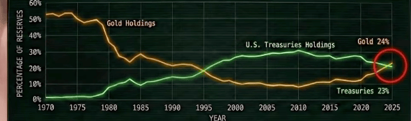 ✅ Recently, that trend has flipped back toward gold — meaning: less confidence in long-duration paper, more preference for neutral reserves that don’t rely on U.S. policy choices.